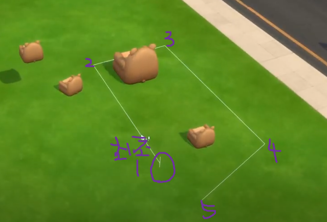 우선 부지를 올리고, 건축향상 모드를 받아 생긴 생활 편집 아이템중 돌맹이를 땅에 심었습니다.그리고 부밖사이를 통해 가운데 흰 기둥의 기울기를 주었습니다. 이외에도 여러가지 사물들을 부밖사이와 건축향상 모드를 통해 조절하였습니다.