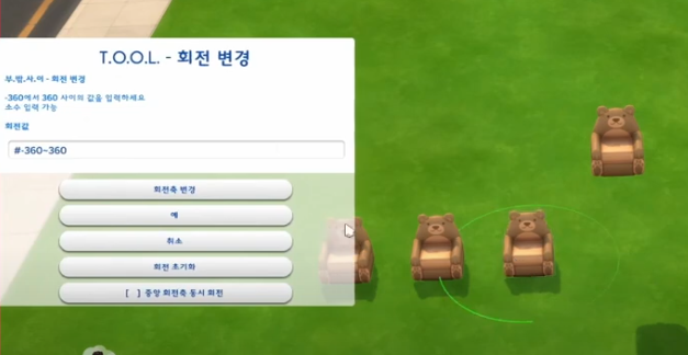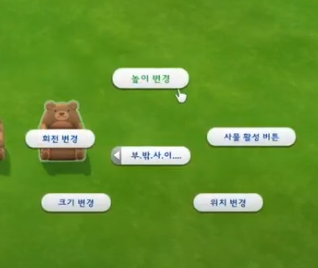 부밖사이의 기능은 높이 변경, 회전변경, 크기변경, 위치변경(y과x축으로), 사물활성 버튼이 있습니다. 아래 하나 하나 설명해 드리겠습니다.