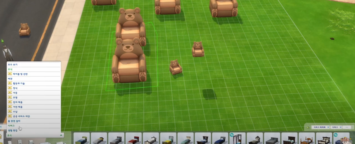 디버그 탬과 생활 편집 아이템을 내 부지에 설치 가능합니다. 디버그탬은 심과 상호 작용할 수 있는 아이템이고 생활편집은 부지밖에있는 조형물들이라고 생각하시면 됩니다.